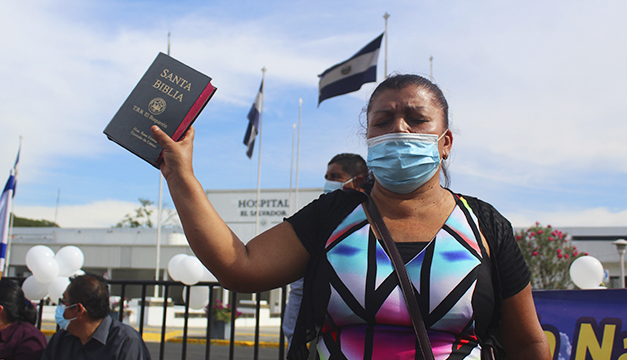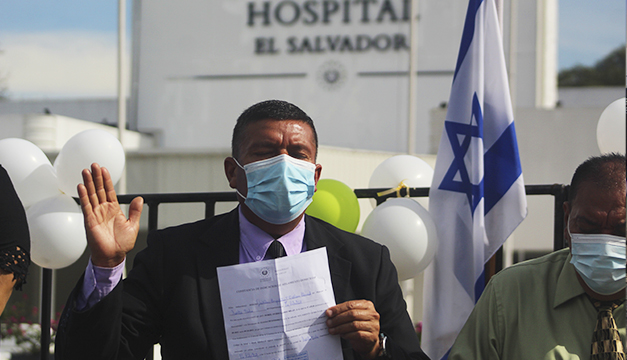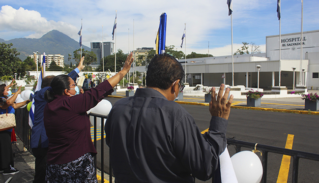 Los líderes religiosos iniciaron con una breve oración para los enfermos de covid-19 en El Hospital El Salvador./ Gabriel Aquino.
