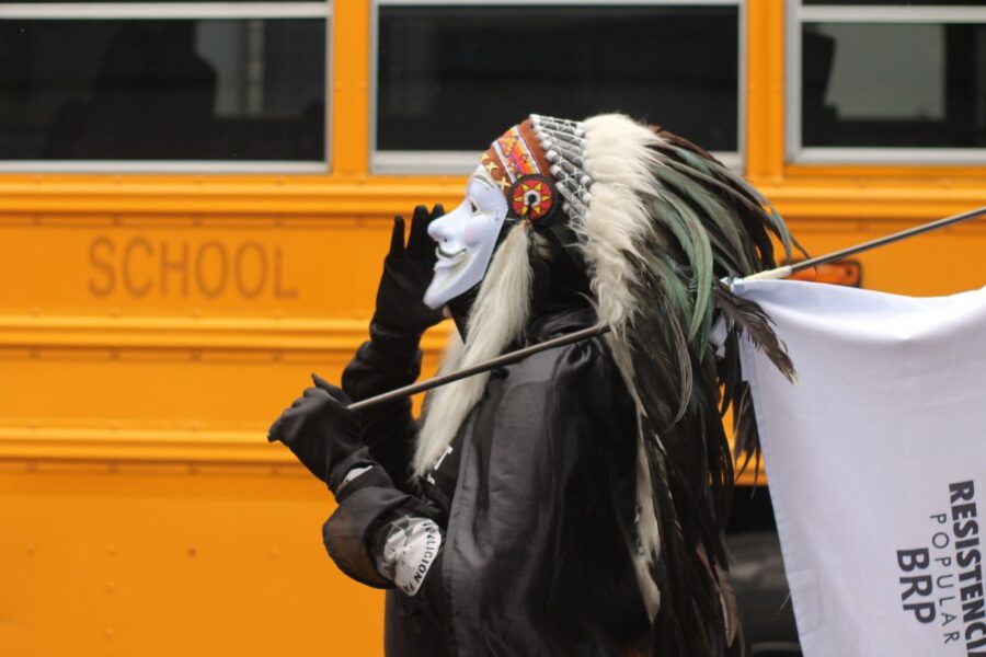 A las 10:30 a.m., los manifestantes llegaban frente a la Biblioteca Nacional de El Salvador (BINAES).