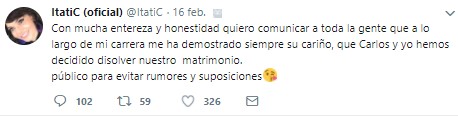 La mexicana se volcó a Twitter para dar a conocer la noticia, misma que fue recibida por sus fans como un balde de agua fría, más porque hemos estado en época de mucho amor.