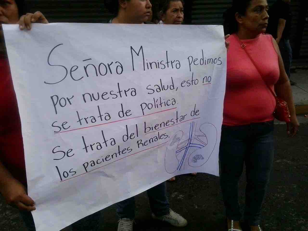 Con frases como "¡Queremos vivir!" los pacientes con insuficiencia renal protestaron esta mañana frente al Ministerio de Salud, quienes a paso lento caminaron desde el hospital Rosales.