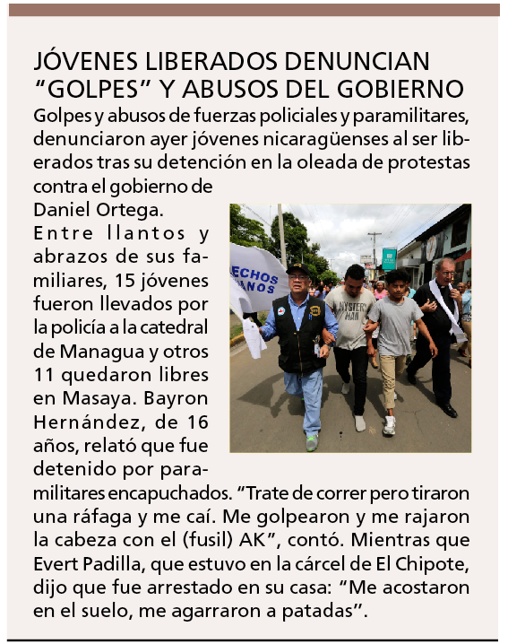 El secretario general de la OEA, Luis Almagro, dijo a su vez que el tiempo “va en contra de Nicaragua” y subrayó que “se necesita una respuesta política” para resolver las tensiones en el país.