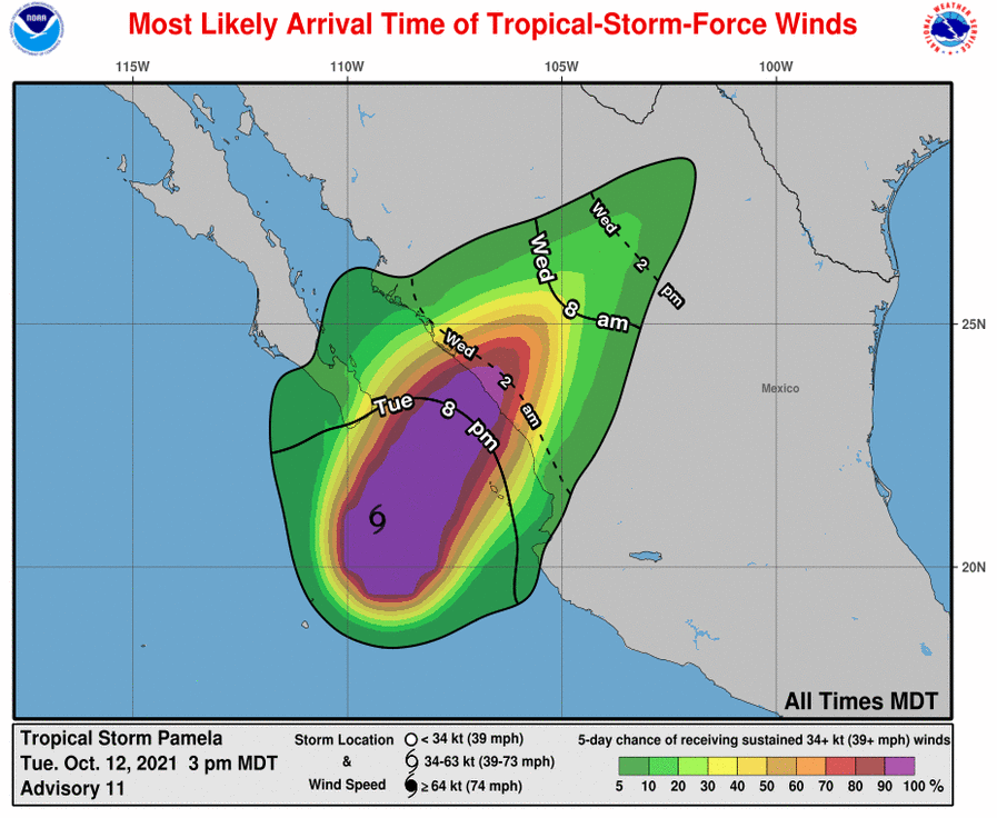 Previamente se había pronosticado que Pamela podría fortalecerse hasta alcanzar una categoría cercana a huracán mayor, es decir 3 en la escala Saffir-Simpson (de 5).