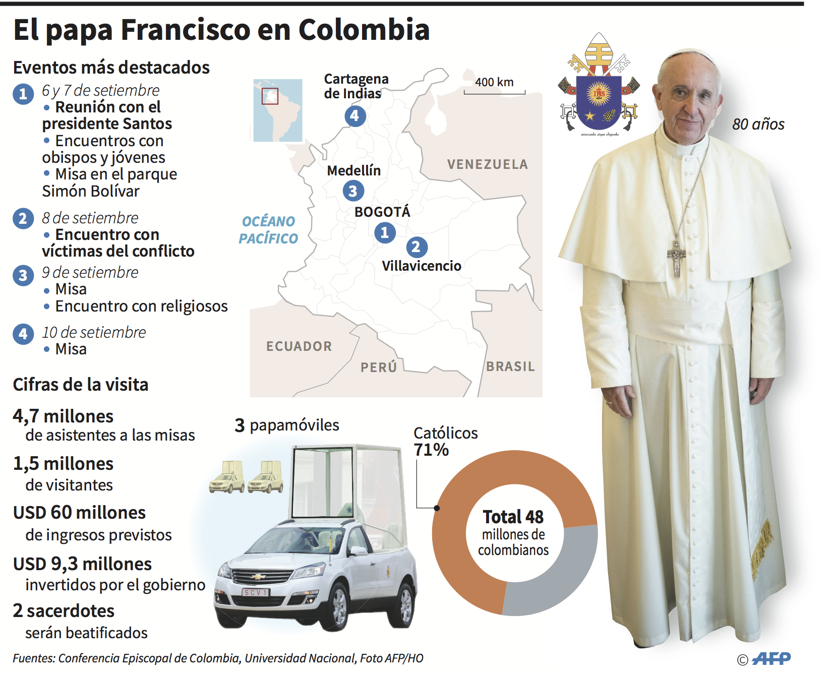 Miles de personas salieron a las calles a darle la bienvenida a Francisco a Colombia, el séptimo país con más católicos en el mundo.