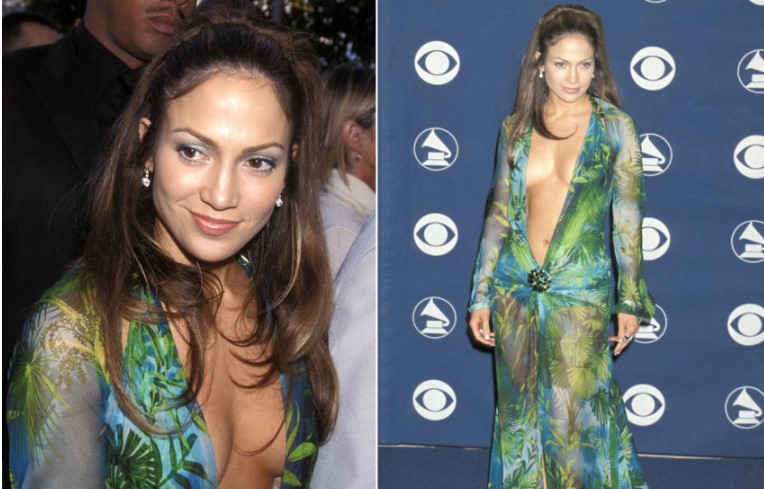 López lució durante los Grammy en el 2000 un vestido verde que no dejaba mucho a la imaginación, mientras que la actriz llevó un vestido de la marca Fashion Nova, con poco escote y recatado, si se compara con el de JLo.