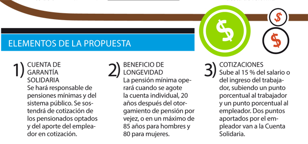 La reforma crearía una Cuenta de Garantía Solidaria que pagaría pensiones mínimas, por vejez y del sistema público, desde el cuarto mes calendario a partir de la vigencia de la reforma.
