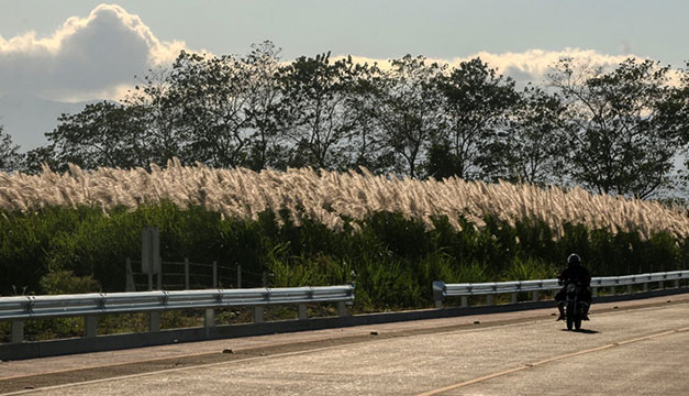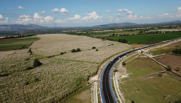 El paso por el nuevo periférico Claudia Lars ofrece unas encantadoras vistas a las planicies de Zapotitán, La Libertad, los imponentes tres volcanes, en el occidente del país, y en esta época, una vista a los dorados cañaverales .