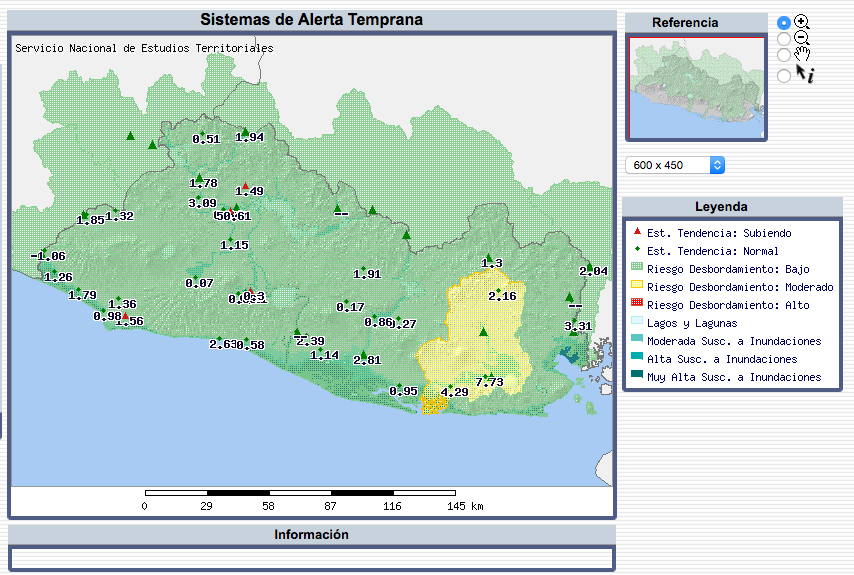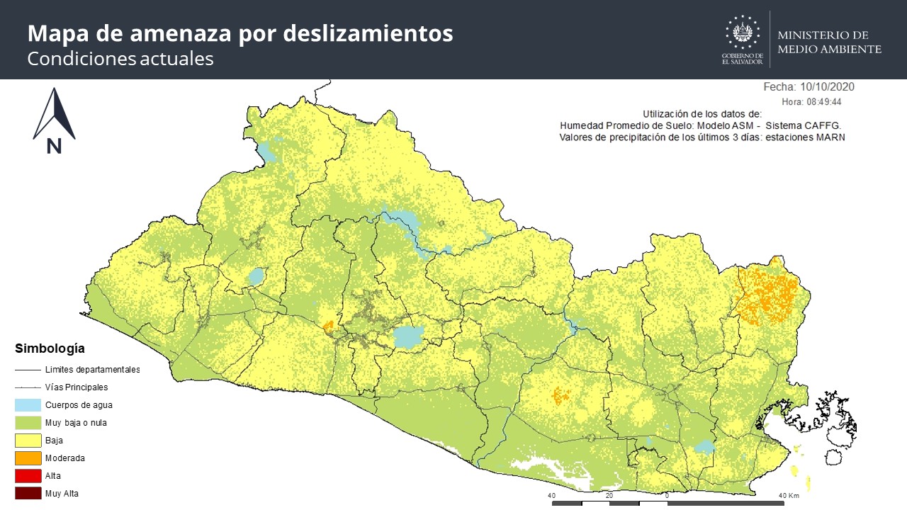 Considerando el porcentaje de humedad que presentan los suelos, la distribución de la precipitación en las últimas horas, el pronóstico meteorológico y las condiciones de nivel observadas, para las próximas 24 horas, se prevé MODERADA probabilidad a desbordamiento en la cuenca del río Grande de San Miguel”. Boletín del MARN