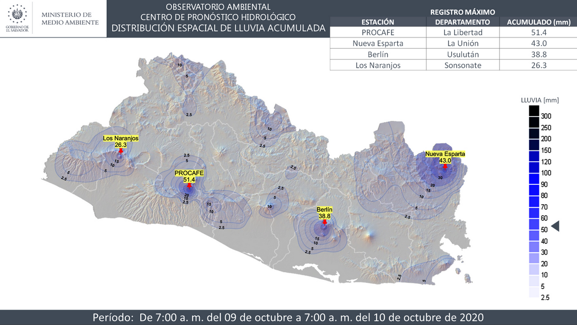 El reporte de lluvias muestra importantes acumulados de humedad en Nueva Esparta (La Unión), Berlín (Usulután), en Jayaque (La Libertad) y Los Naranjos (Sonsonete).