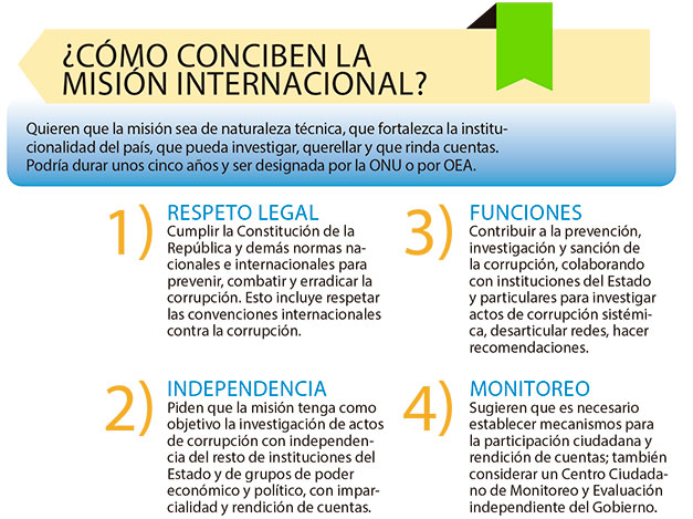 Los representantes de las organizaciones piden que la misión internacional cumpla la Constitución de la República y las normas nacionales e internacionales para prevenir, combatir y erradicar la corrupción.