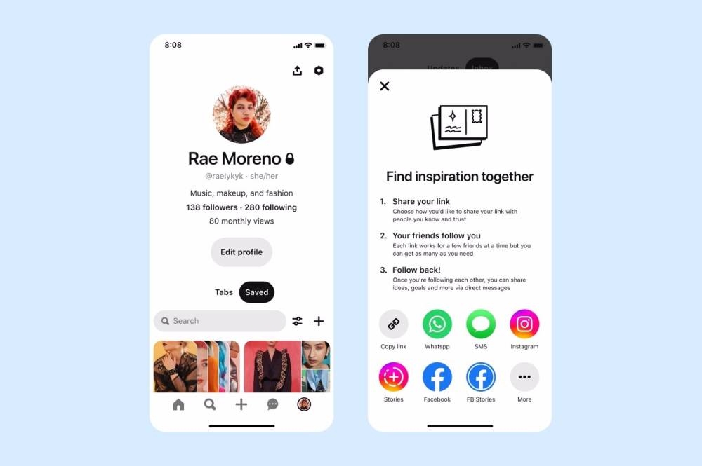 La plataforma de descubrimiento e inspiración, que permite compartir y encontrar ideas como recetas, sugerencias de decoración para el hogar o de estilo de moda, pretende ampliar las formas en las que proteger el espacio personal de sus usuarios.