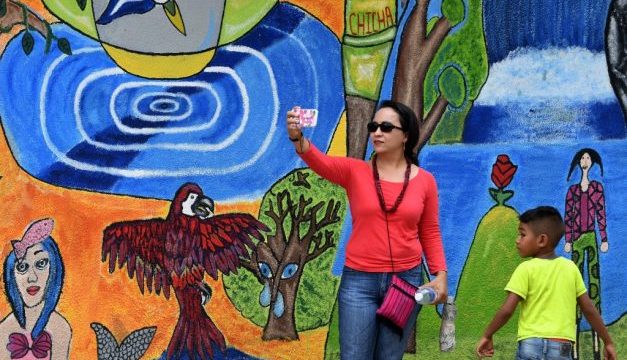 El típico pueblo de raíces coloniales españolas, con su parque central rodeado por la iglesia y la alcaldía, celebraba por lo alto el "Tercer Encuentro de Muralistas de los Pueblos del Mundo", en el marco del 24 Festival de Alimentos y Juegos Tradicionales en Extinción.