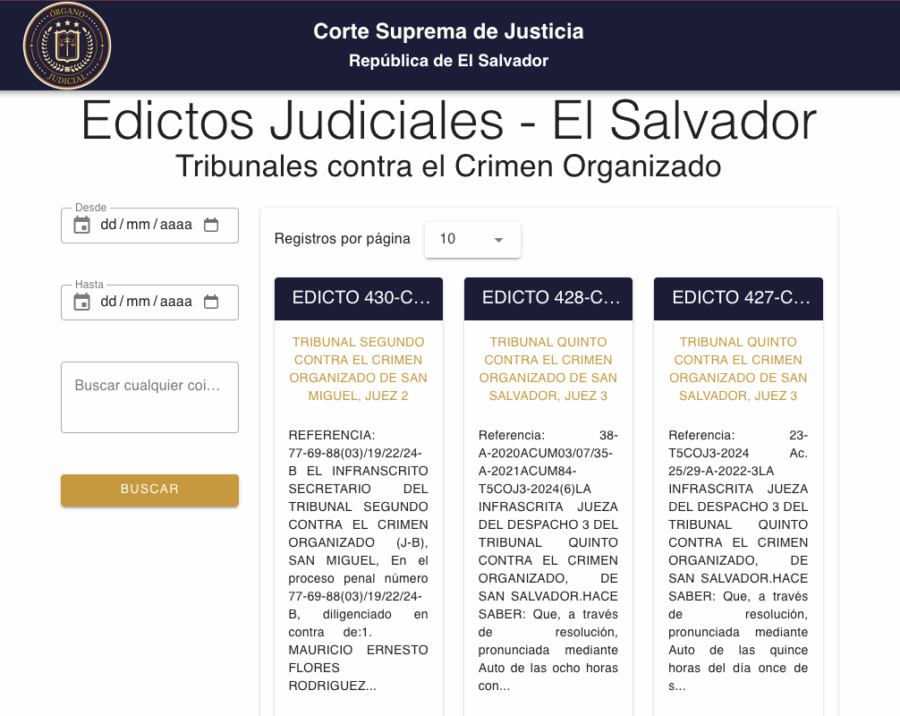 El acta número 53, de la sesión del 17 de julio de 2025 de la Corte Plena, reveló que desde el 1 de abril, que la herramienta digital empezó a funcionar, hasta junio del presente año se emitieron un total de 256 edictos judiciales a través de la nueva plataforma, tanto en Juzgados como en Cámaras, y con ello eliminar el uso de publicaciones en medios tradicionales como prensa escrita.