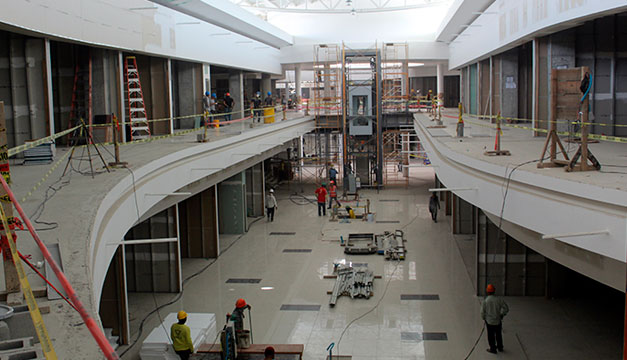 Hasta el momento, el centro comercial reporta la instalación de escaleras mecánicas, elevadores, pasillos y divisiones de los locales. De igual forma, se presenta un avance en los cuatro niveles de parqueo, que espera ofrecer un estacionamiento con espacio para 900 vehículos.