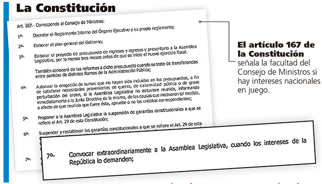 El presidente explicó que recurrió a la aplicación del artículo 167 de la Constitución de la República, que faculta al Consejo de Ministros a “convocar extraordinariamente a la Asamblea Legislativa cuando los intereses de la República lo demandan”.