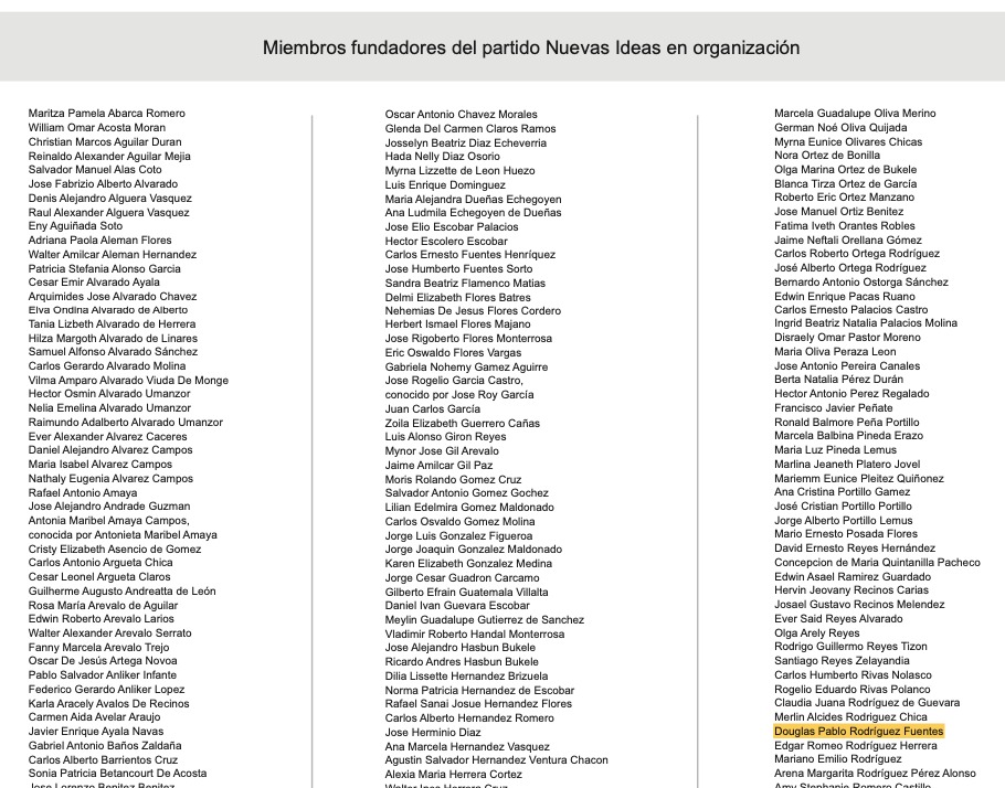 La ley también establece que los miembros del Consejo Directivo del BCR, que es dirigido por el presidente de la institución, quedan inhabilitados cuando son directivos de organizaciones de carácter político. En este caso, Rodríguez fue fundador del partido de Nuevas Ideas.