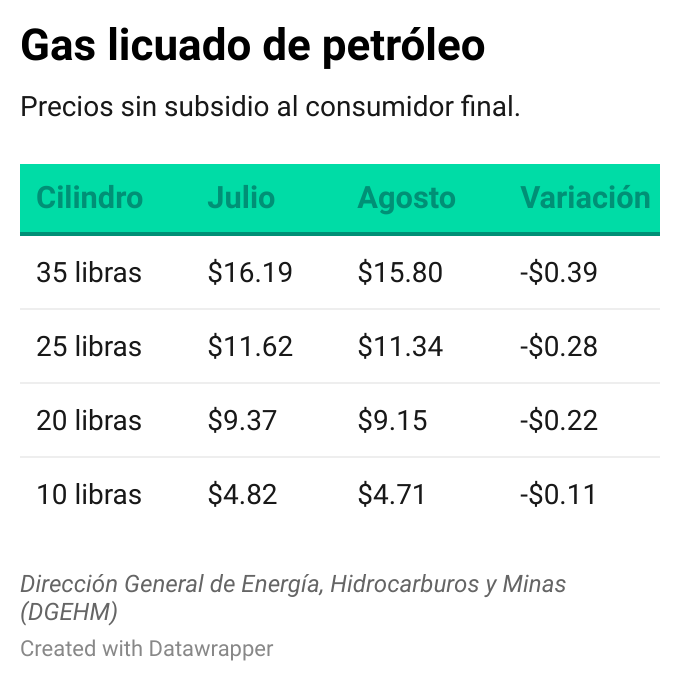 La Dirección de Energía recordó que el subsidio focalizado será de $8.04 en agosto, por lo cual los hogares con esta subvención pagarán $3.09 al momento de comprar el cilindro de 25 libras.
