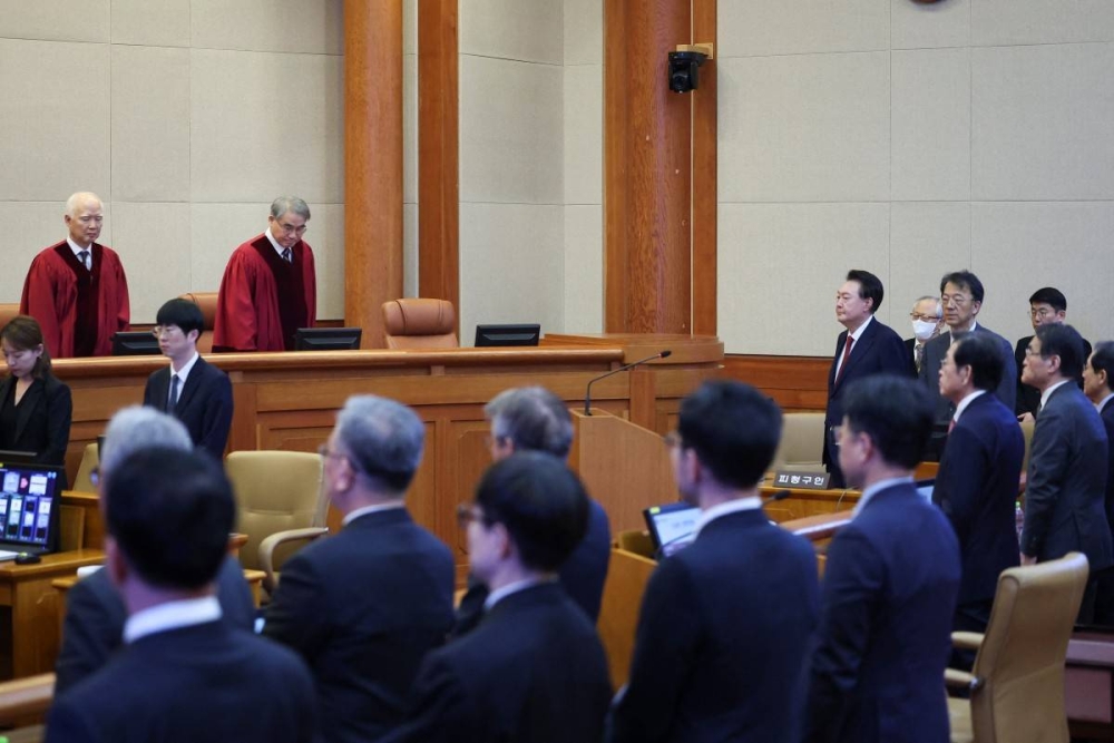 A la espera de la decisión del Constitucional,Yoon está suspendido de funciones y, además, fue arrestado la semana pasada en el marco de una investigación por insurrección después de pasar semanas atrincherado en su residencia en Seúl.