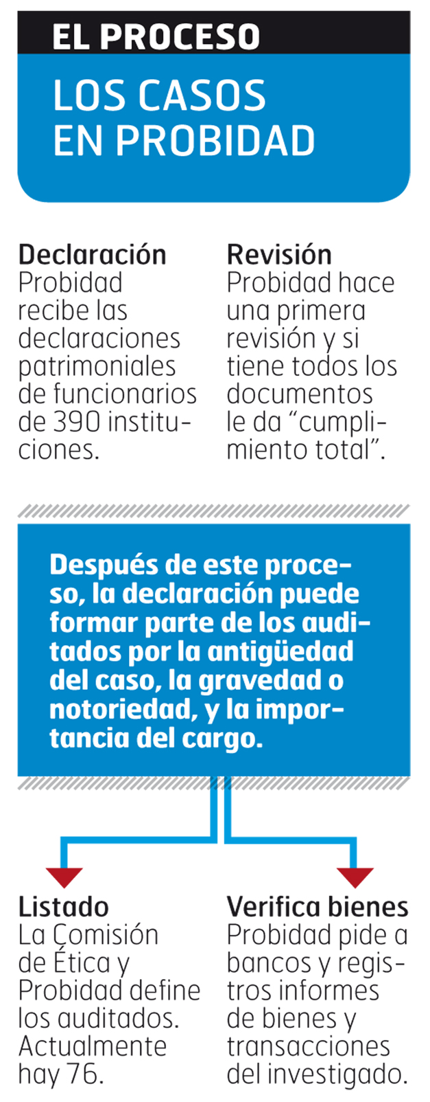 El jefe de Sección de Probidad, Carlos Pineda, dice no dan abasto aunque tuvieran 50 personas, por la cantidad de funcionarios que están obligados a declarar. Pineda aseguró que los próximos cinco casos estarán concluidos a finales de febrero o inicios de marzo.