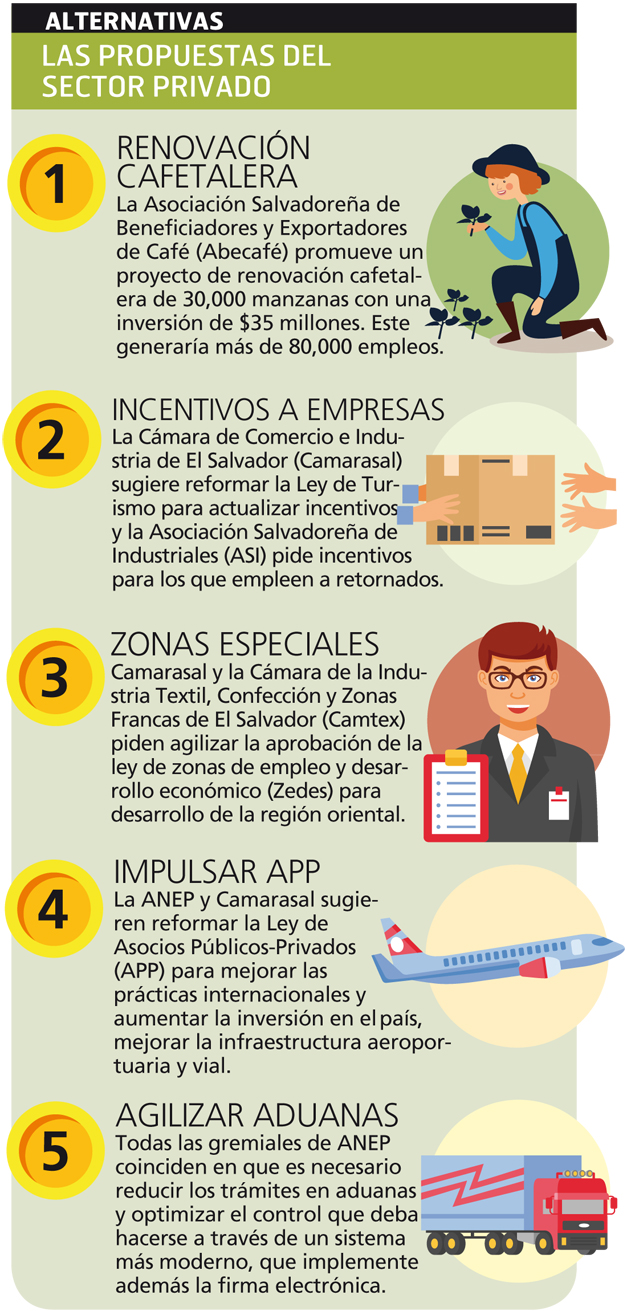 Para favorecer a los retornados, además, los agremiados de ANEP sugieren la creación de una línea de crédito con condiciones especiales para emprendedores salvadoreños.