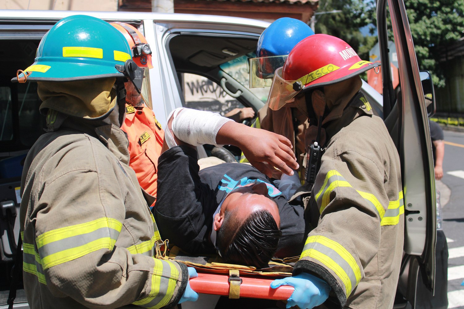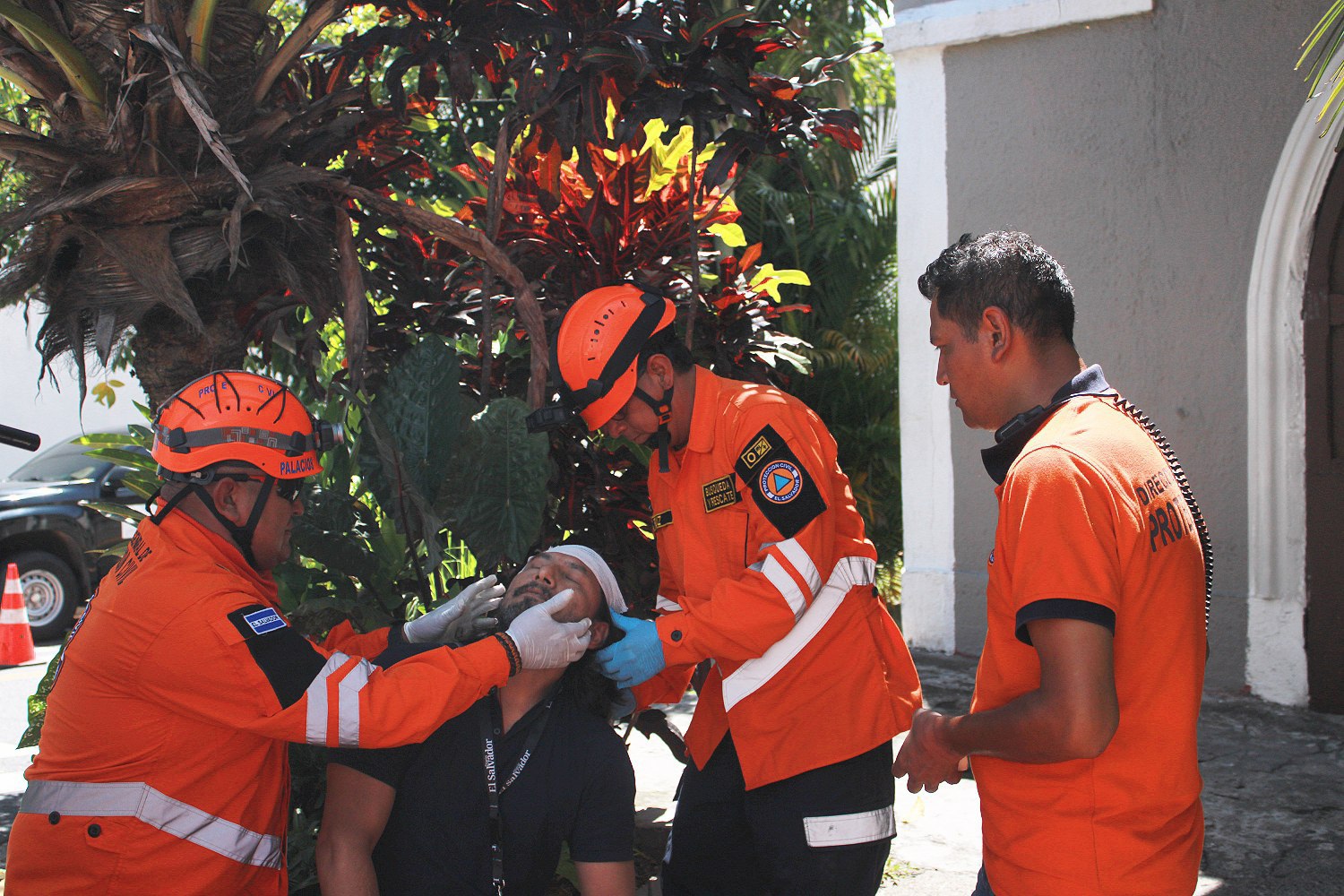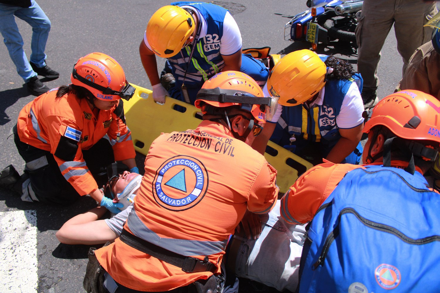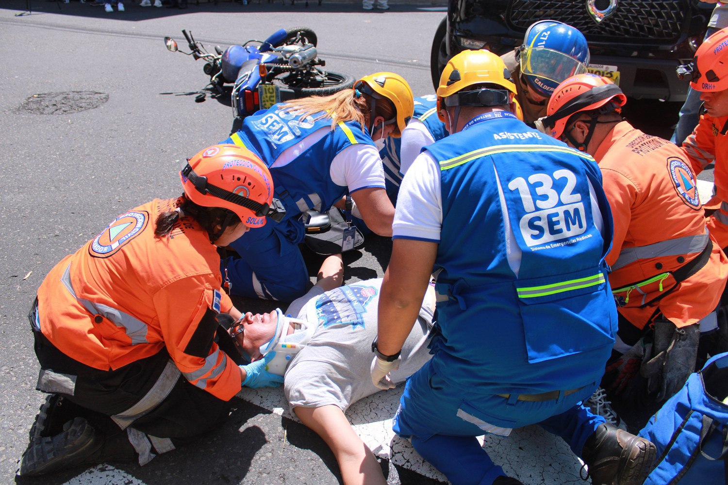 El ejercicio se realizó sobre la 5a calle Poniente y 15 avenida Norte, en las cercanías de la Biblioteca de la Asamblea Legislativa, en San Salvador, donde participaron elementos de Protección Civil, Cuerpo de Bomberos y del Sistema de Emergencias Médicas.