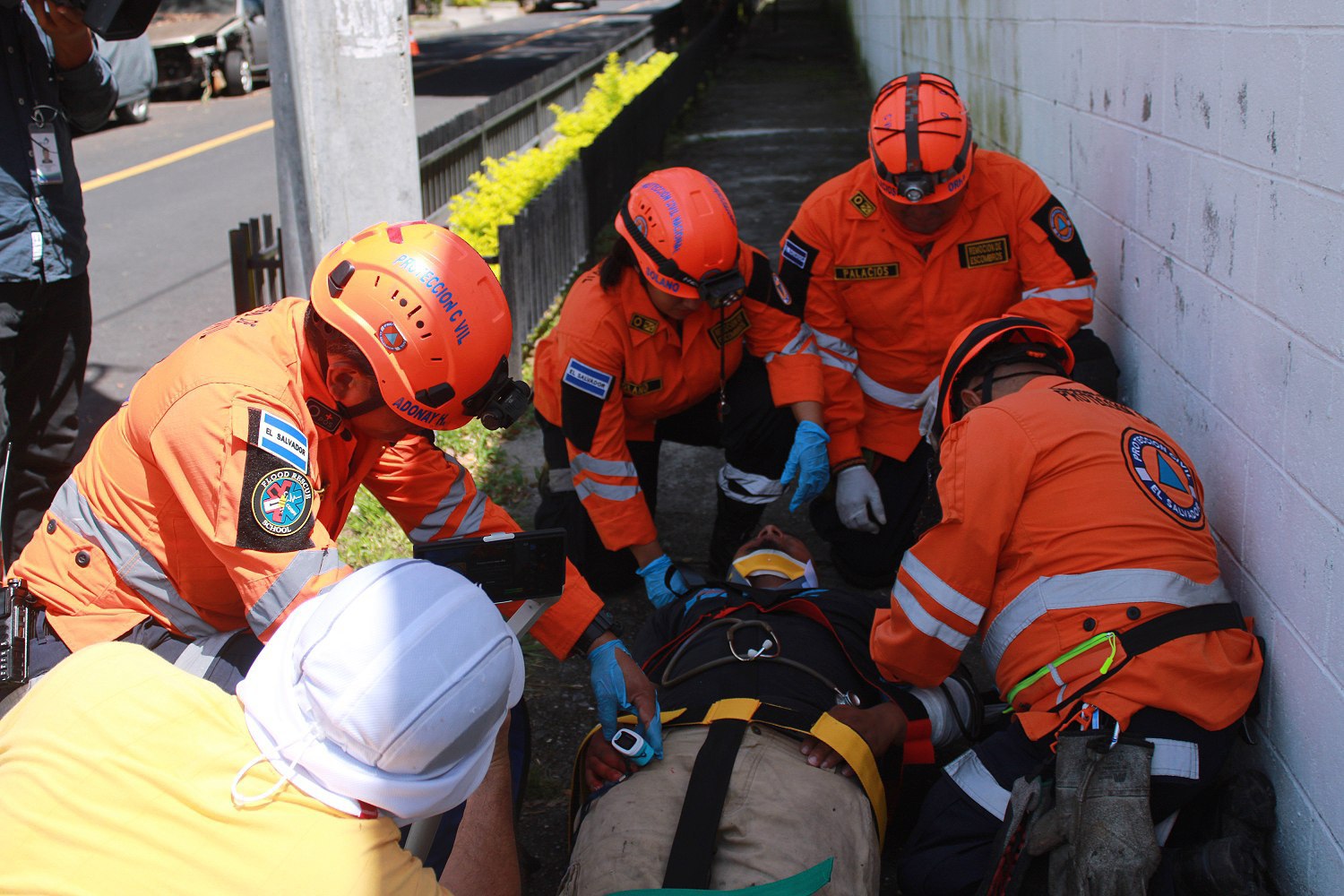 Durante el desarrollo del simulacro, un periodista de Diario El Salvador resultó lesionado tras la caída de un drone (vehículo aéreo no tripulado) que era operado en el sector para la cobertura de la actividad. La persona recibió atención prehospitalaria y fue traslado para su debido revisión médica.