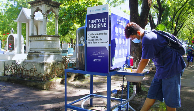 Alcaldía migueleña ha colocado 20 puntos de higiene en cementerios./cortesía de alcaldía de San Miguel.