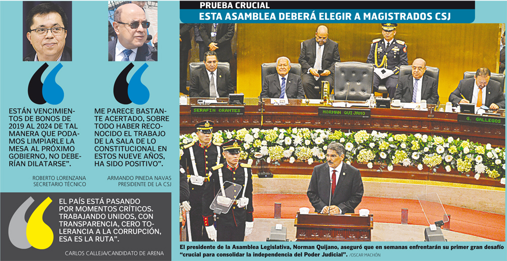 Quijano pidió a los diputados buscar un acuerdo fiscal que asegure la sostenibilidad de finanzas públicas, reformar el reglamento interior para garantizar una junta directiva justa y mejorar la elección de funcionarios de segundo grado. Según el presidente de la Asamblea, la elección de magistrados de la Corte Suprema de Justicia será crucial para consolidar la independencia del poder judicial.
