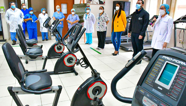 El el evento para reabrir la clínica de rehabilitación pulmonar fue dirigido además de Alabí por el director del hospital Saldaña, José Enrique Rodríguez, y el representante de la OPS/OMS, Carlos Garzón.