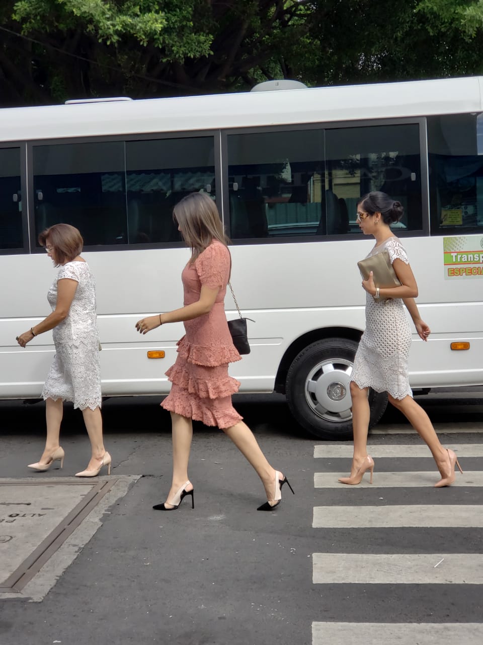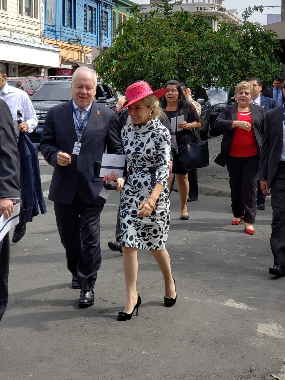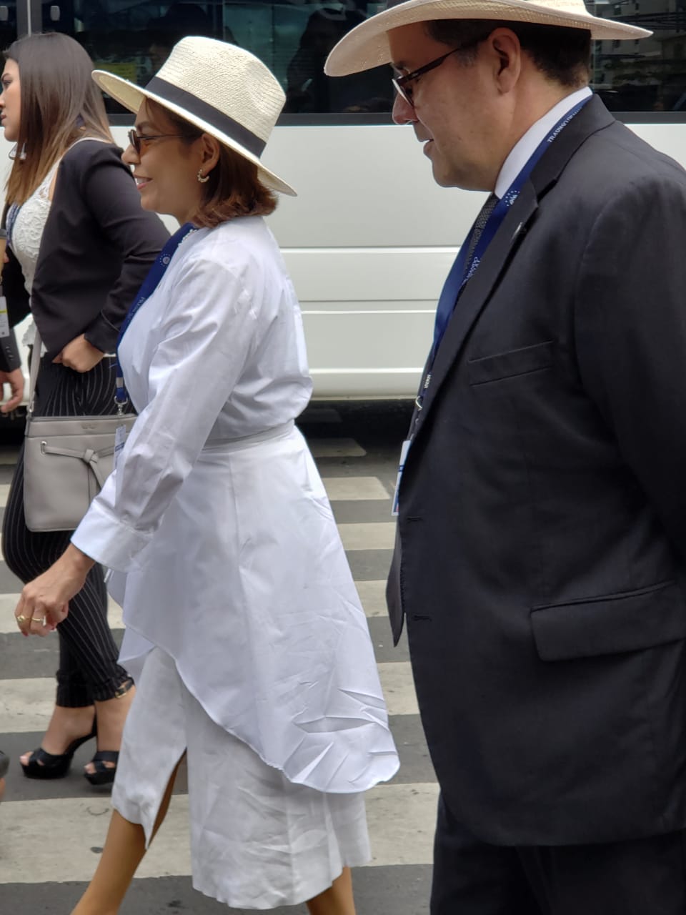 “La esposa del señor presidente de la República de Guatemala utilizó un elegante vestido blanco de corte columna y con detalles de hojas en color negro a la altura de la cintura, por su parte, la esposa de vicepresidente de la República del Ecuador uso un vestido rojo, a la rodilla, con corte de capa que la hizo ver moderna y elegante”, describió Hurtado, a quien también le llamó la atención la embajadora Manes: “Una persona que nos agradó ver fue la embajadora de los Estados Unidos de Norteamérica, Jean Manes, utilizando un vestido de corte de una sola manga, en color blanco, con estampados florales, y largo a la rodilla, combinado con zapatos negros elegantes, y utilizando un collar de lágrimas de San Pedro ( un collar local), se vía fresca, elegante y cómoda”, elogió