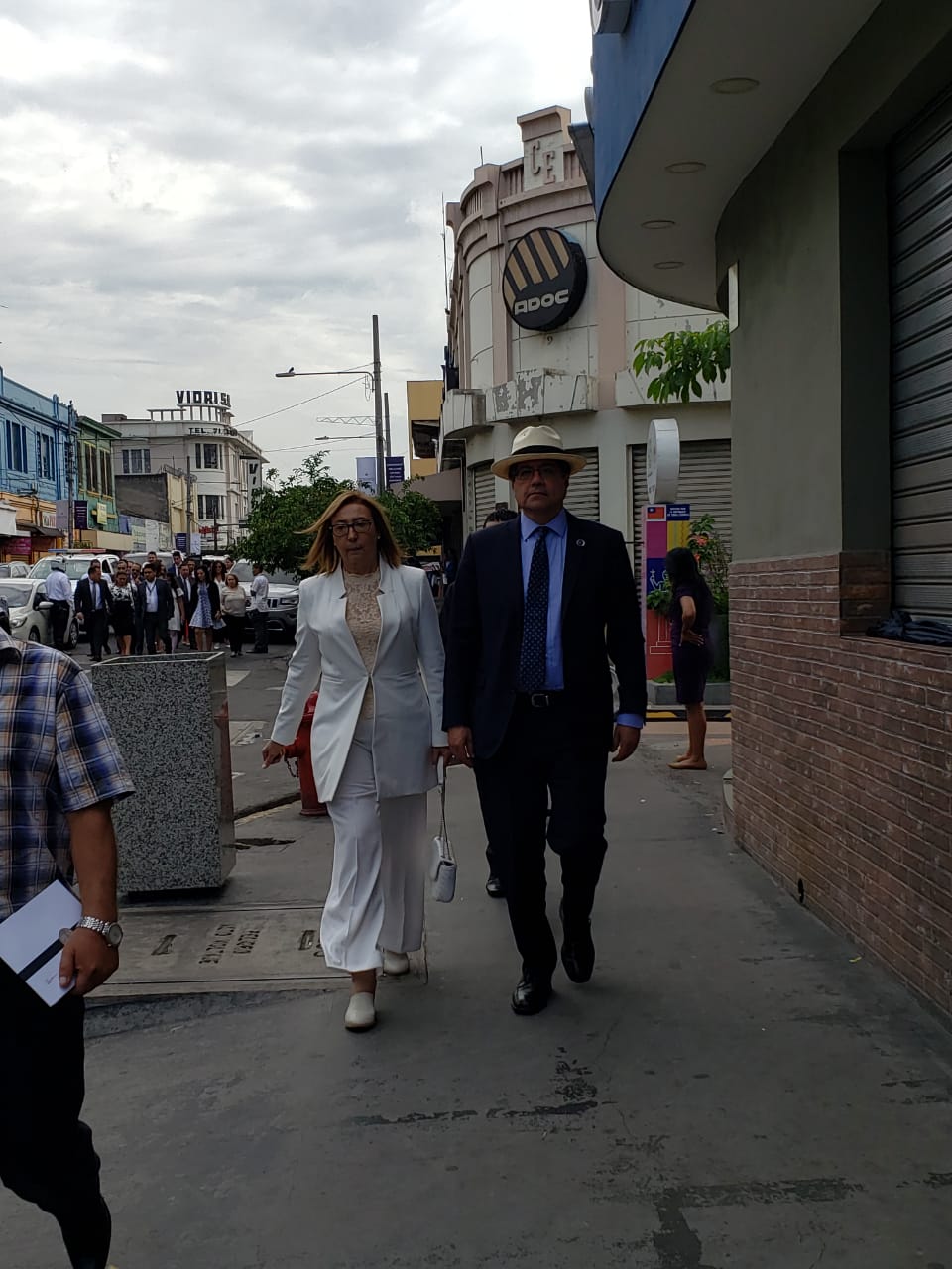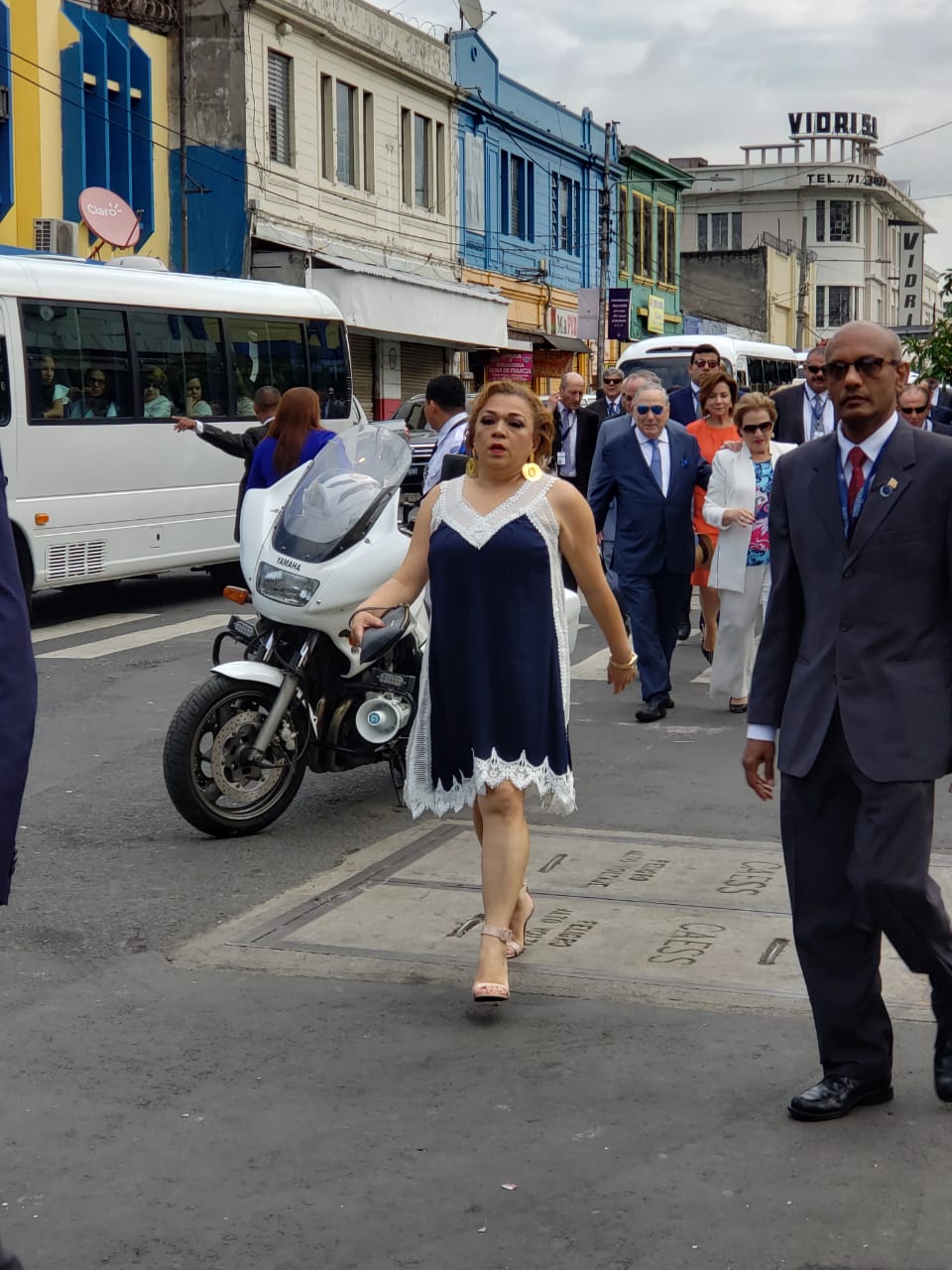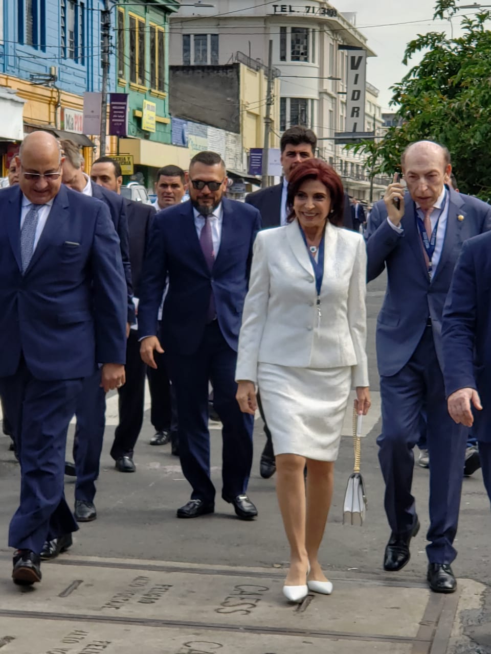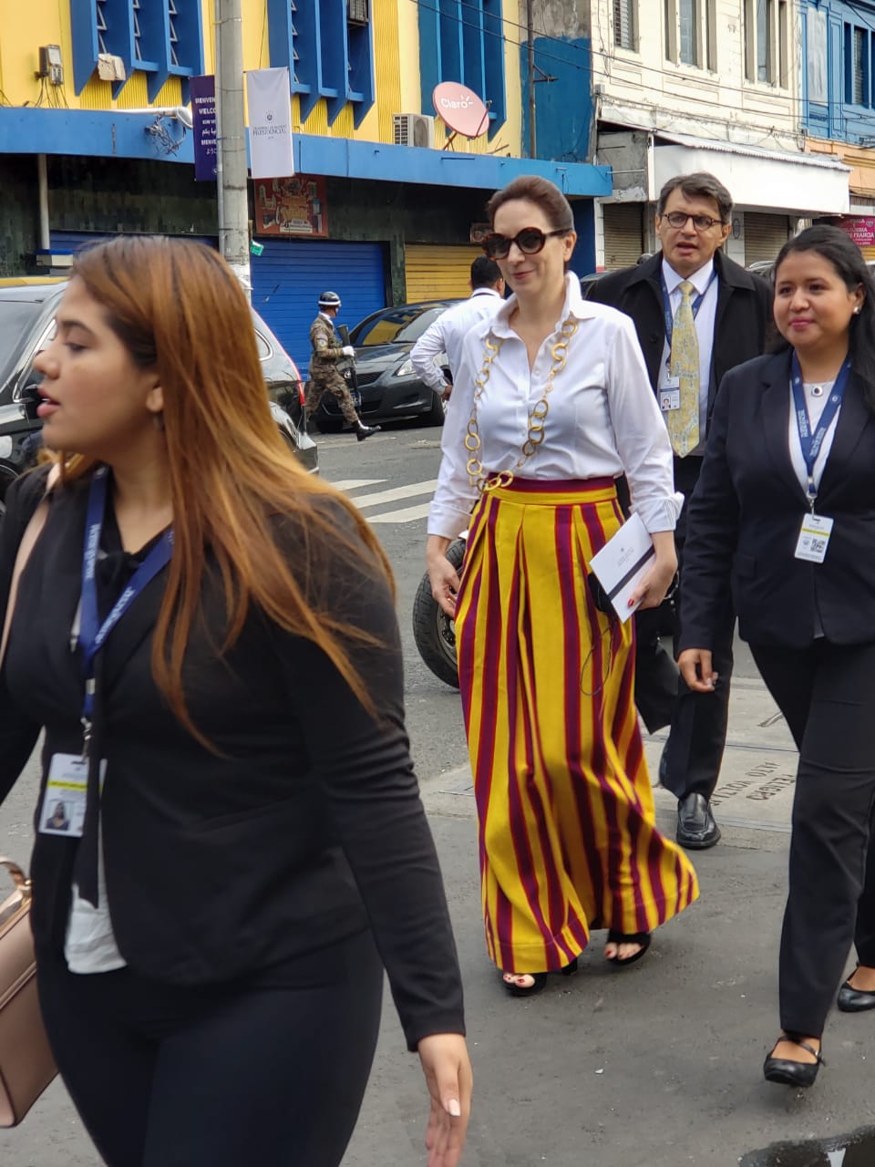 “La esposa del señor presidente de la República de Guatemala utilizó un elegante vestido blanco de corte columna y con detalles de hojas en color negro a la altura de la cintura, por su parte, la esposa de vicepresidente de la República del Ecuador uso un vestido rojo, a la rodilla, con corte de capa que la hizo ver moderna y elegante”, describió Hurtado, a quien también le llamó la atención la embajadora Manes: “Una persona que nos agradó ver fue la embajadora de los Estados Unidos de Norteamérica, Jean Manes, utilizando un vestido de corte de una sola manga, en color blanco, con estampados florales, y largo a la rodilla, combinado con zapatos negros elegantes, y utilizando un collar de lágrimas de San Pedro ( un collar local), se vía fresca, elegante y cómoda”, elogió