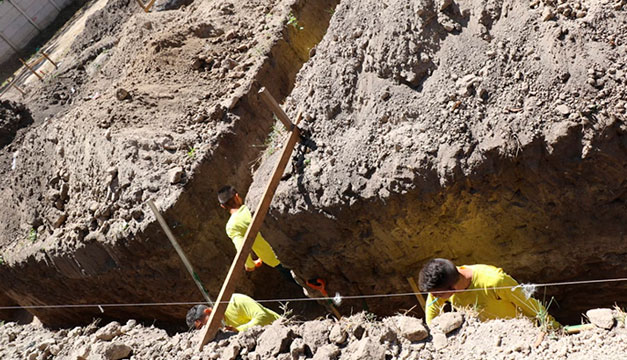 Piocha en mano y con la vigilancia permanente de custodios, una cuadrilla de hombres con camisas amarillas se confunden con los lugareños en los trabajos de excavación donde serán edificadas 64 viviendas para familias desalojadas de la finca El Espino, por una orden judicial.