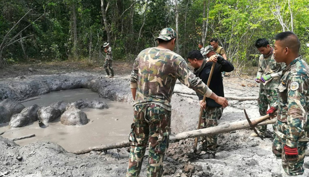"Nuestro equipo llegó con azadas [la mañana del jueves] y empezó a cavar alrededor del hoyo para hacer que las pendientes fueran menos empinadas", explicó Prawatsart.