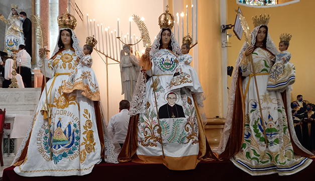Nuestra patrona ha sido restaurada muy profesionalmente como nunca se había hecho. Este trabajo lo realizó un gran maestro, es uno de los cinco restauradores más profesionales y reconocidos del mundo". Fabio Colindres, Obispo de San Miguel.Previo a su entronación, la imagen hizo un recorrido desde el Palacio Episcopal hasta la catedral de San Miguel, llevada por la Asociación de Caballeros y Damas del Santo Entierro.
