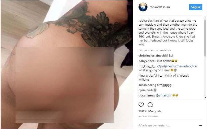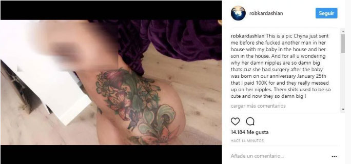 Pero el escándalo no termina ahí. Rob subió de tono las publicaciones y compartió fotos de Blac Chyna desnuda, imágenes que él dijo fueron enviadas por ella.