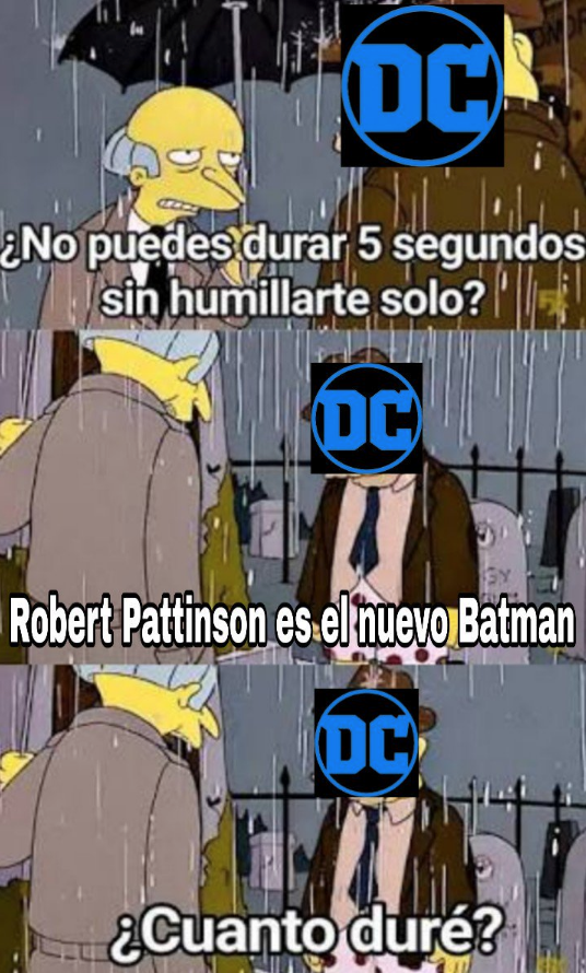 Tras conocerse que el actor Robert Pattinson interpretará el papel de Batman en la próxima película, que estrenará en junio de 2021, los usuarios de redes sociales se han tomado el tiempo para crear diferentes memes para demostrar su descontento hacia este nombramiento.