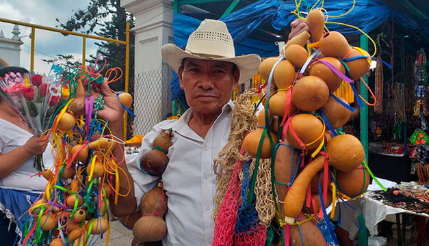 “Para qué ir a los Estados, si aquí nomás hay dólares” Cayetano González tiene 72 años de vida y 55 de vender tecomates en la basílica de Guadalupe en Antiguo Cuscatlán. Viaja desde su natal Petén, Guatemala, cada noviembre, con su cosecha de tecomates. Relata que empezó a venir al país cuando había tren y colones, ahora asegura: “Para qué ir a los Estados (Unidos) si aquí nomás hay dólares”.