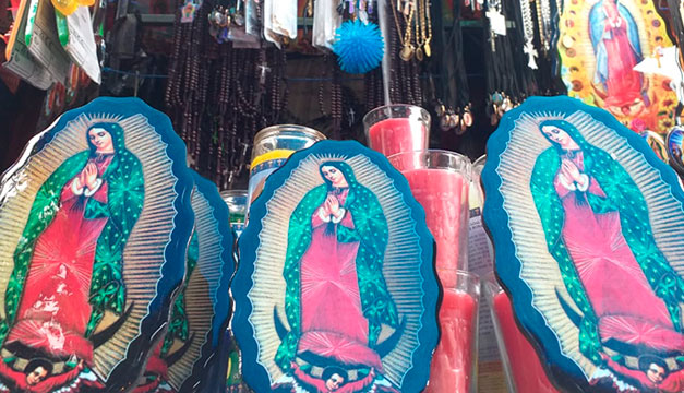Cuadros y rosarios son parte del comercio en los alrededores de la basílica. / Juan Carlos Villafranco