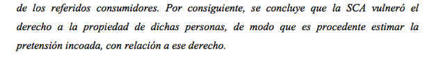 Según la Sala “la autoridad demandada (Sala de lo Contencioso Administrativo) justificó, contra ley expresa, las prácticas que Davivienda realizó en perjuicio de los consumidores de sus servicios de crédito y con ello permitió que dicha sociedad obtuviera beneficios en menoscabo del derecho a la propiedad de los referidos consumidores”.