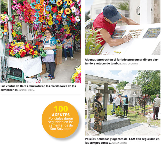 El jefe de la delegación San Salvador centro, Juan Carlos Arévalo, afirmó que el Cuerpo de Agentes Metropolitanos (CAM), Fuerza Armada, instituciones de socorro, Policía Nacional Civil (PNC) y la división de tránsito estarán en los siete cementerios, de los cuales dos son privados.