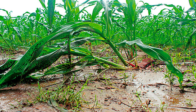 Daños en los cultivos en El Lempa, donde manzanas de maíz se destruyeron por la inundación. / Óscar Machón