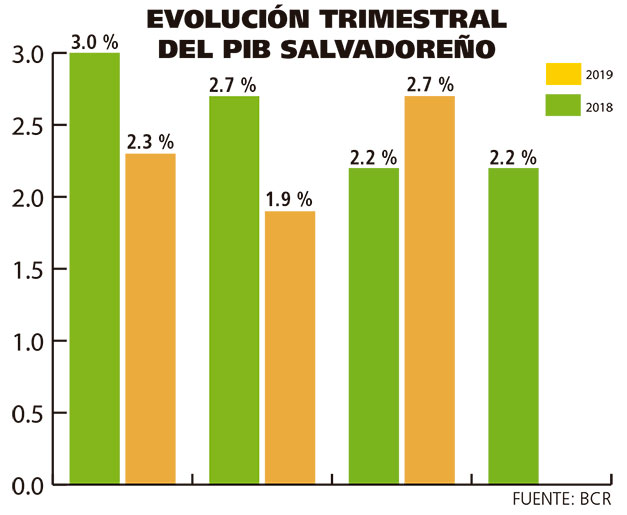 Bajo esos escenarios desafiantes, sumó, se mantiene la proyección que la economía salvadoreña crezca un 2.3 % al término de 2019 y llegue a un 2.5 % para 2020. “Es un trabajo por hacer (…) el crecimiento no es una labor que le compete al Gobierno, solo facilita algunas condiciones para que los agentes productivos se desenvuelvan con eficiencia”, indicó.
