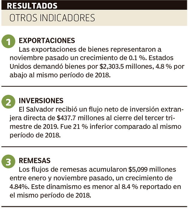 Aguilar explicó que estos sectores mostraron un mayor dinamismo frente a un desaceleramiento en las exportaciones y remesas, dos de los grandes pilares de la economía salvadoreña, pues son actividades que “no merman” frente a la tensión internacional generada por la guerra comercial entre Estados Unidos con China, y las políticas migratorias del Gobierno estadounidense.