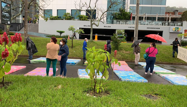 Los sindicalistas bajo la lluvia exigen al fiscal iniciar proceso legal contra alcalde de San Salvador por despidos injustificados./Fotografía: InformativaSv.