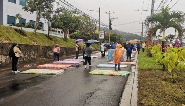 Los sindicalistas de la Alcaldía de San Salvador bloquearon el acceso de vehículos por los dos extremos./Fotografía: Jaime López.