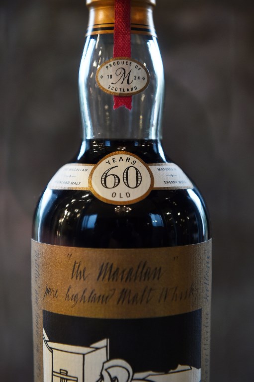 Esta botella de 1926 producida por la destilería Macallan y diseñada por el artista italiano Valerio Adami se vendió por 848.750 libras (1,09 millones de dólares, 947.000 euros), batiendo el récord que tenía hasta ahora una botella del mismo whisky vendida por 1,01 millones de dólares en mayo en Hong Kong.
