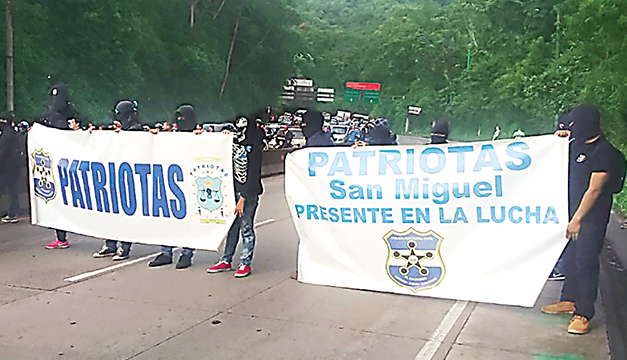 Los manifestantes que se hacen llamar “Patriotas” exigieron mejores prestaciones laborales y salariales para los agentes. “Los policías exigimos aumento salarial”, decía una de las pancartas que bloqueaban el carril que conduce al occidente del país.