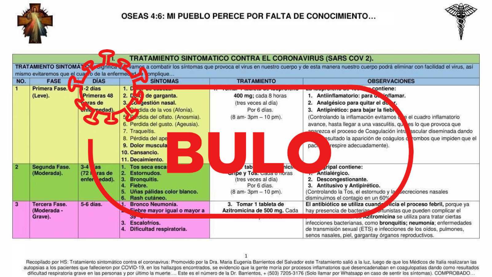 Según el medio, al contactarse con el Ministerio de Sanidad de España para verificar la veracidad del tratamiento, afirman que, recordó: “el tratamiento de los síntomas no evita que se desarrolle la enfermedad ni evita complicaciones”, y que ante la presencia de síntomas Covid-19 debe consultarse con un profesional.