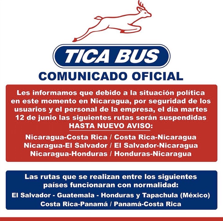 Las rutas suspendidas son: El Salvador-Nicaragua, Costa Rica-Nicaragua y Honduras-Nicaragua, así comos sus viajes de retorno.