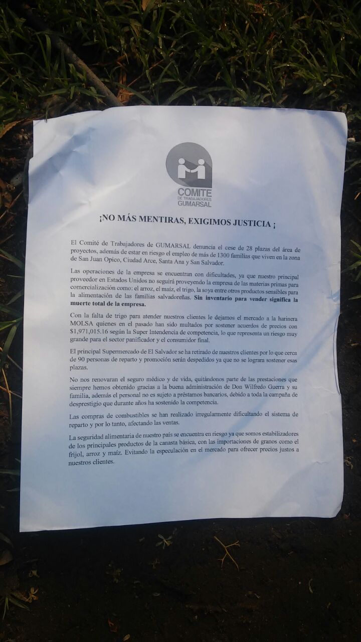 "Las operaciones de la empresa se encuentran con dificultades, ya que nuestro principal proveedor en Estados Unidos no seguirá proveyendo a la empresa de las materias primas para comercialización como el arroz, el maíz, el trigo, la soya, entre otros productos sensibles para la alimentación de las familias de salvadoreñas. Sin inventario para vender, significa la muerte total de la empresa", dijo Gumarsal a través de un comunicado.