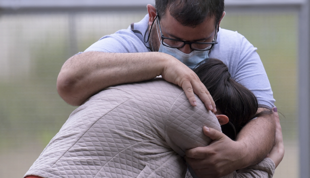 Familiares de una víctima esperan afuera del Instituto de Medicina Legal de Passos, en el estado de Minas Gerais, Brasi. /AFP.